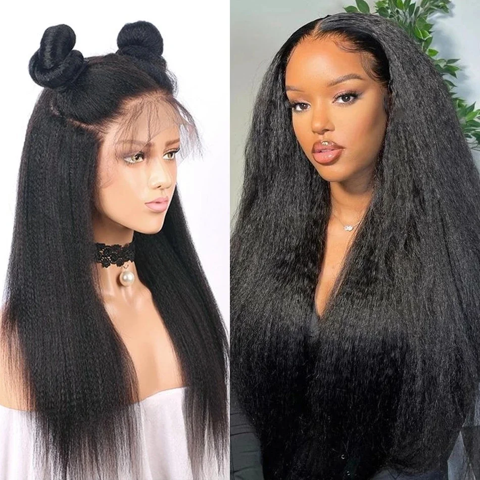 Light Yaki Invisible Knots Ombre Brown Color Kinky Straight Full Raw Hair 5*5 Transparent Lace Closure Wigs for Black Women