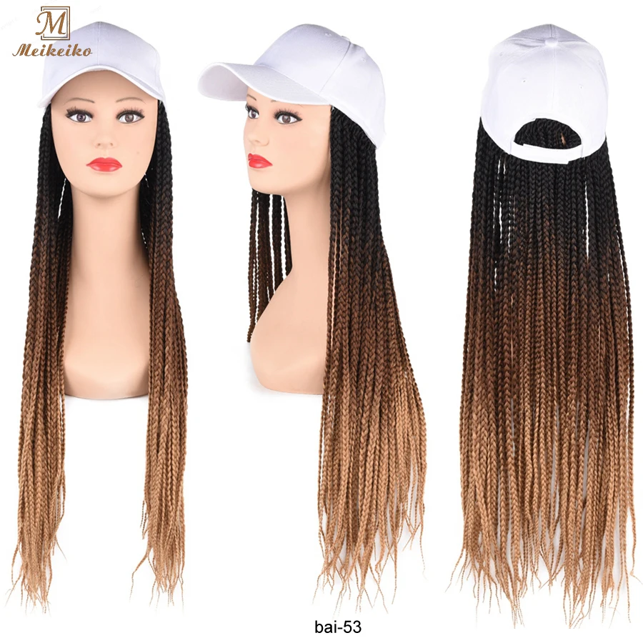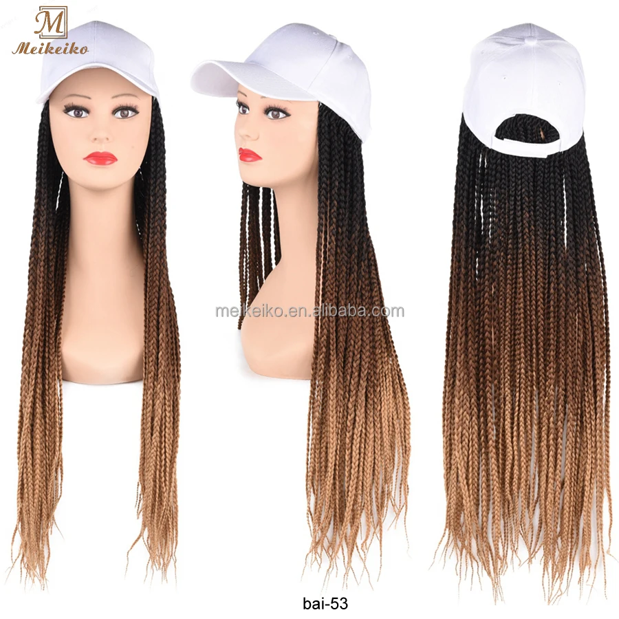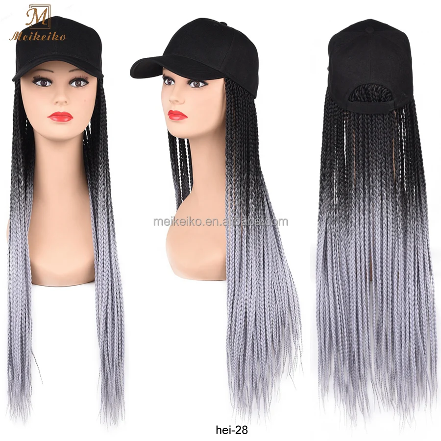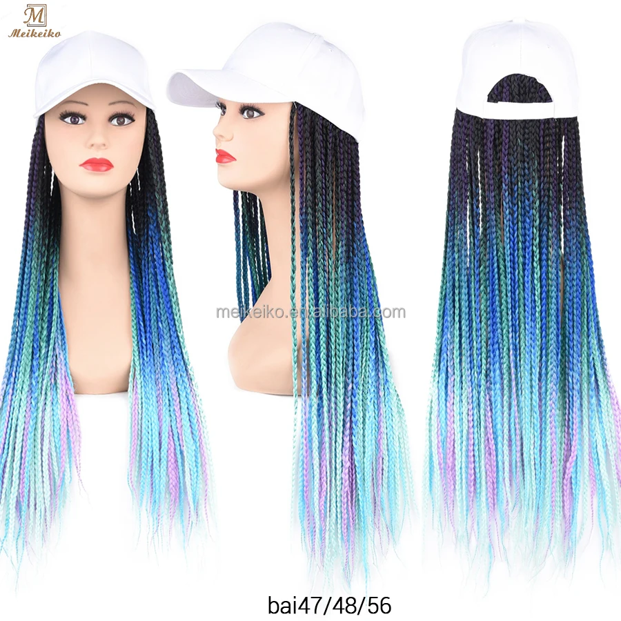 Hot Selling Hot Long Synthetic Baseball Cap Wig with Braided Box Braids Wigs For Afro Women Daily Wear White Hat Wig Adjustable