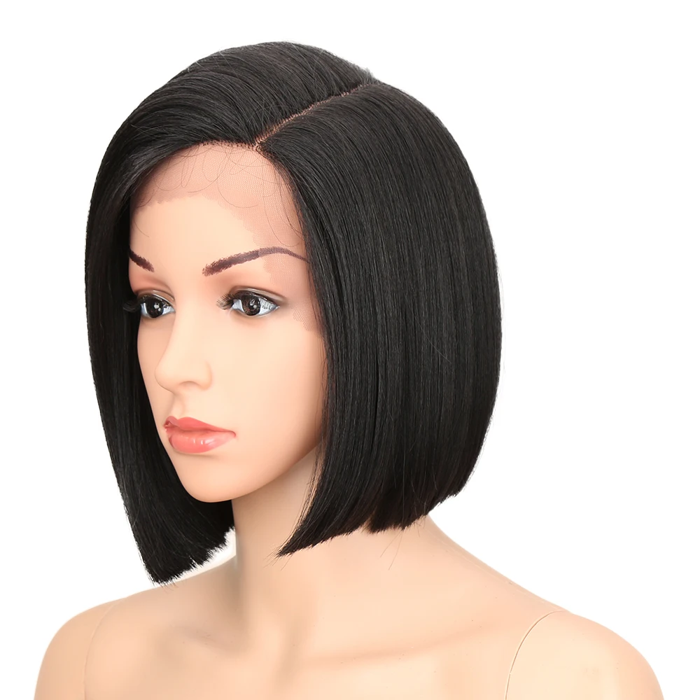 Noble Natural Black Bob For Black Women Color Swiss Short Heat Resistance Lace Front Synthetic Hair Wigs
