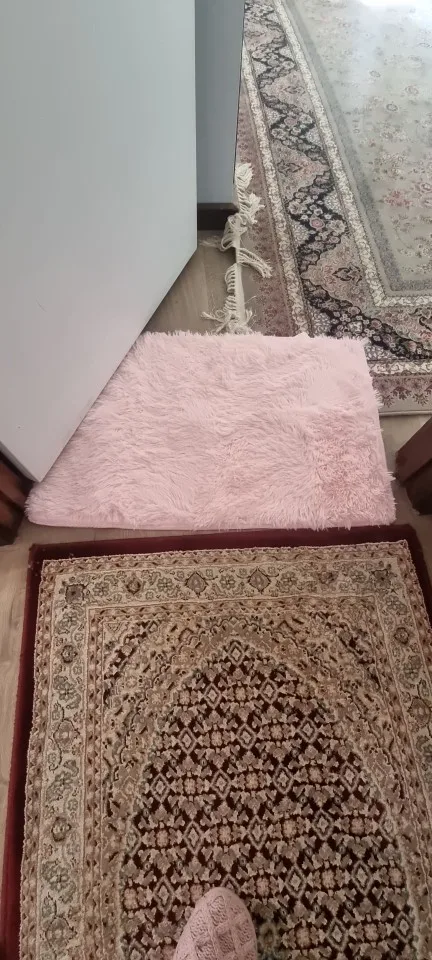 سجادة منفوشة لطيفة جدًا وضعتها أمام المرآة. ❤️