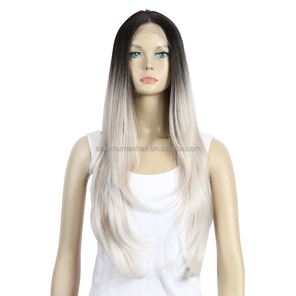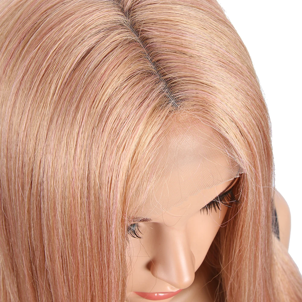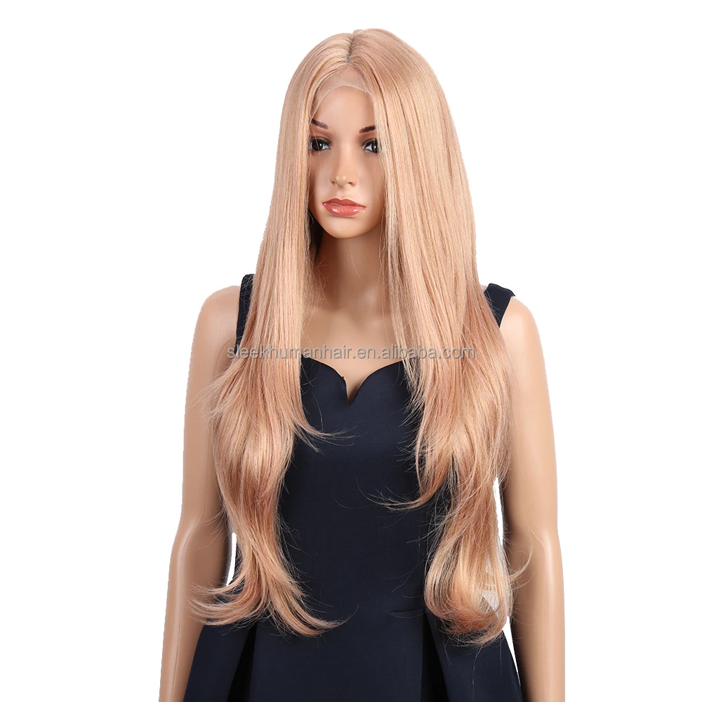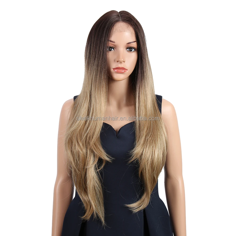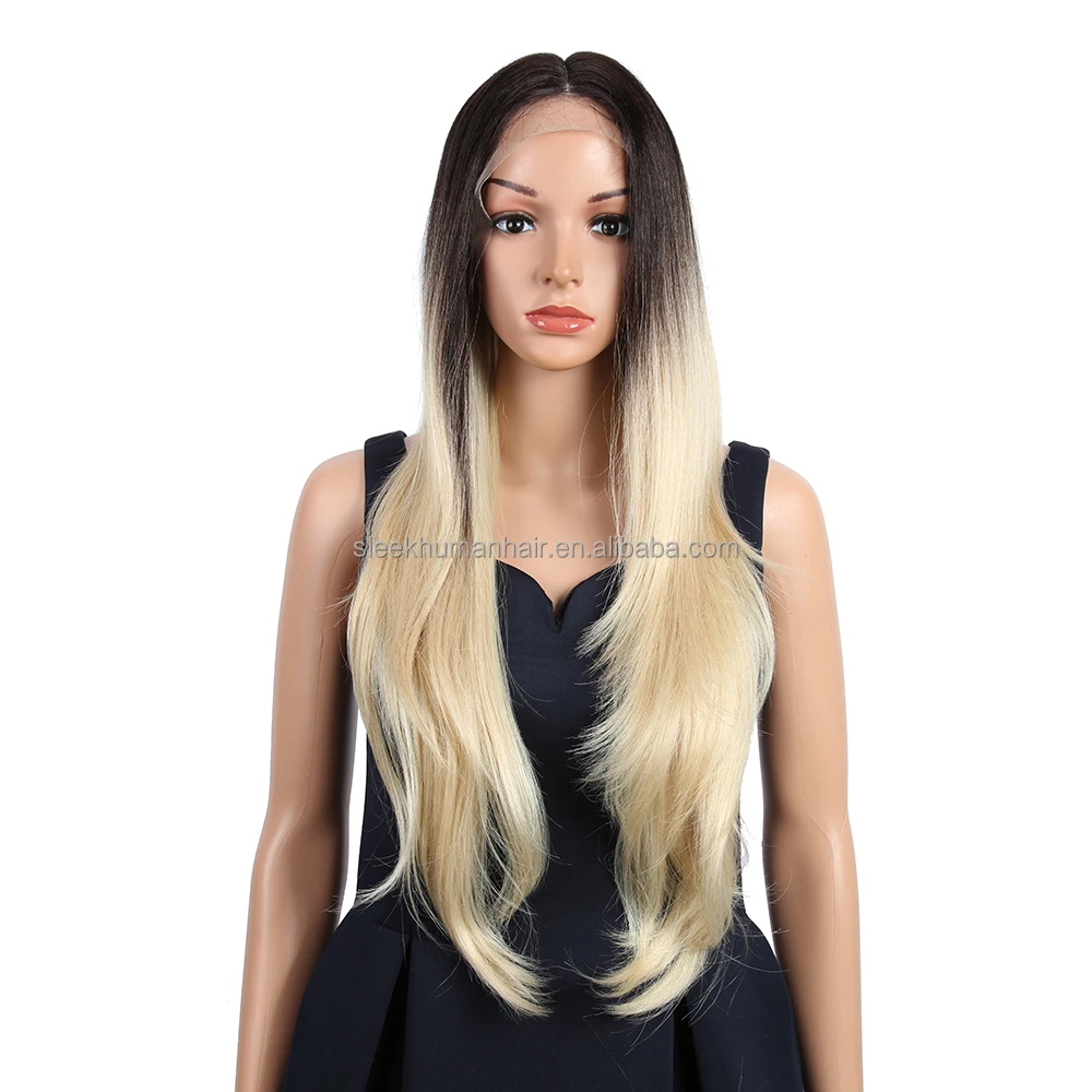 Wholesale Swiss T Middle Part Lace High Temperature Ombre Blond 31′ Long Natural Hairline Body Wave Synthetic Lace Front Wig