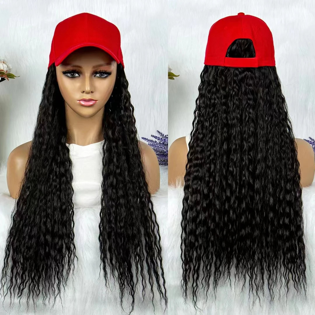 Women Wig Hats Baseball Cap Wig Synthetic Hair Straight Wave Curly Wig Hats for Black Women